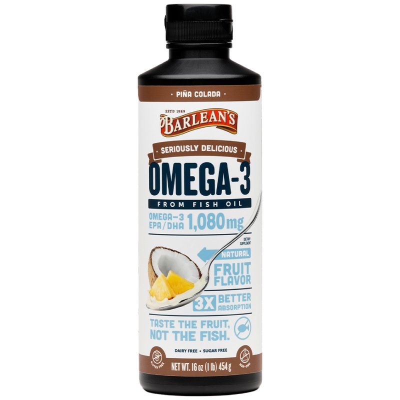 Barlean's Pina Colada Omega 3 Fish Oil Liquid Supplement 1080mg of High Potency EPA & DHA Omegas, Smoothie Flavored & Burpless Omega 3 for Kids and Adults, 16 oz
