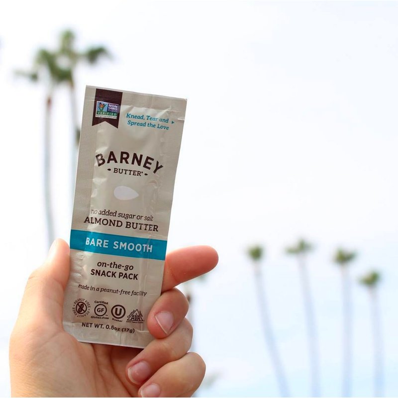- SCRUMPTIOUSLY SMOOTH: Contains 12, 0.6 ounce single serve packets of classic and spreadable Barney Bare Smooth Almond Butter with NO added sugar or salt. We blanch fresh almonds in small batches to remove gritty skins for an ultra-smooth, creamy texture