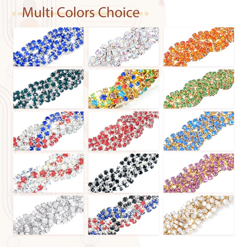 - Rhinestone headband is adorned with multi-colored crystals, expertly set in a durable Rhinestone foundation, and secured with a sturdy elastic cord, ensuring both comfort and longevity.