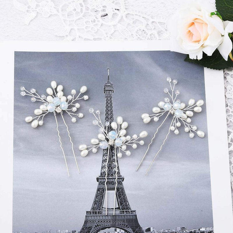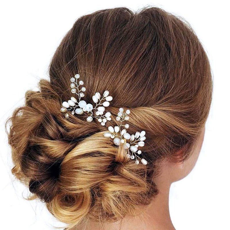 Barode Bride Pearl Wedding Hairpin Rhinestones Bridal Hair Pins Sparkly Crystal Hair Clips Jewelry for Women and Girls (Pack of 2) (Silver)