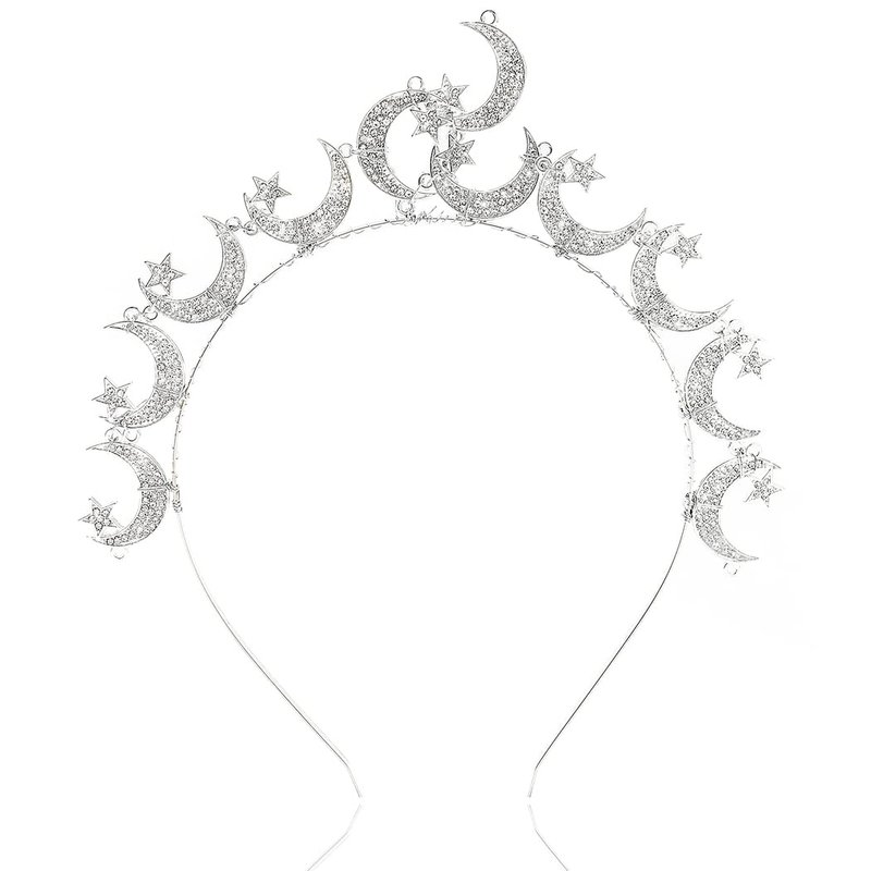 Barode Moon Crown Headband Silver Star Bride Tiaras Bridal Wedding Headpiece Princess Angel Prom Birthday Party Hair Accessories for Women