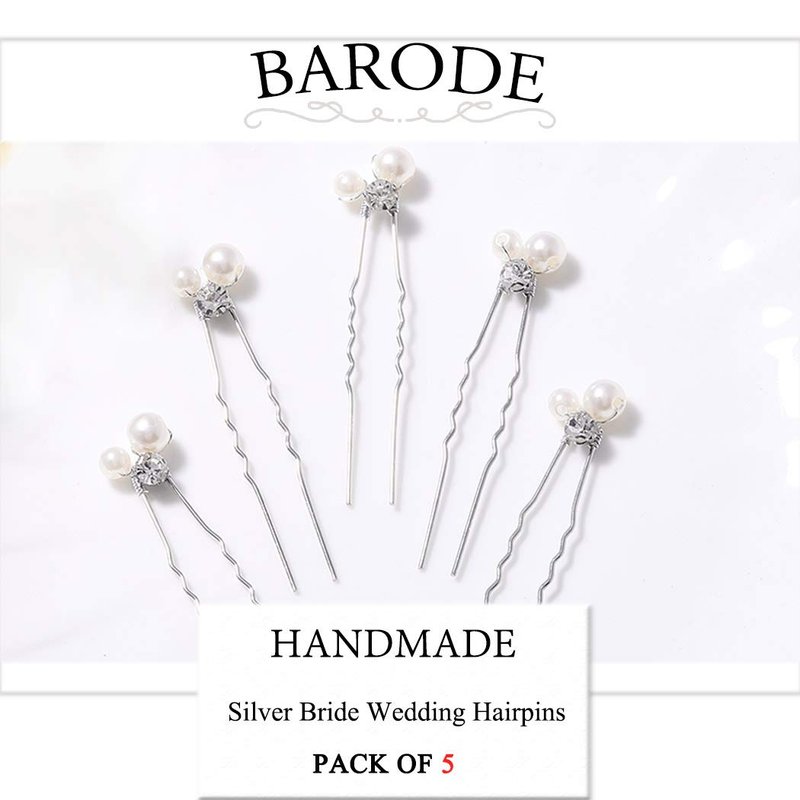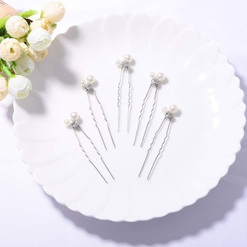 Barode Peals Wedding Hair Pins Rhinestones Bridal Hairpieces Gem Pearl U Pins Bride Hair Accessories for Women and Girls (5 Pcs)