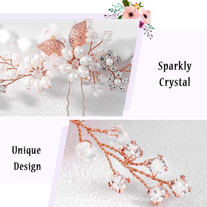 - ★Wedding hair pin approx size:3.9*3.2Inches (10*8cm); Color: Rose gold;