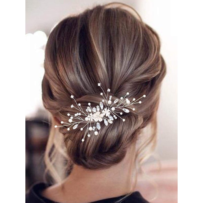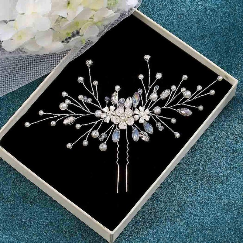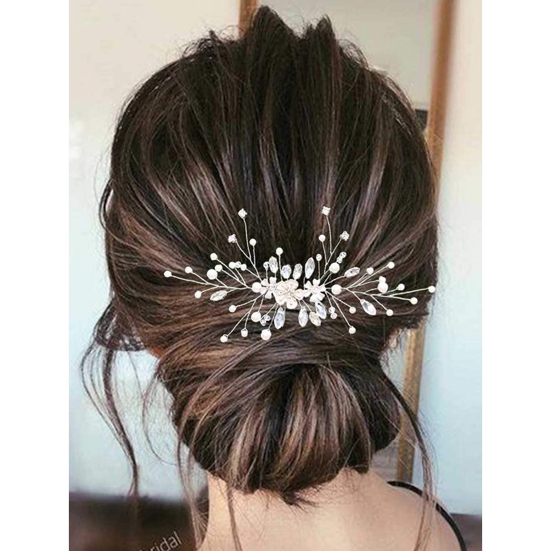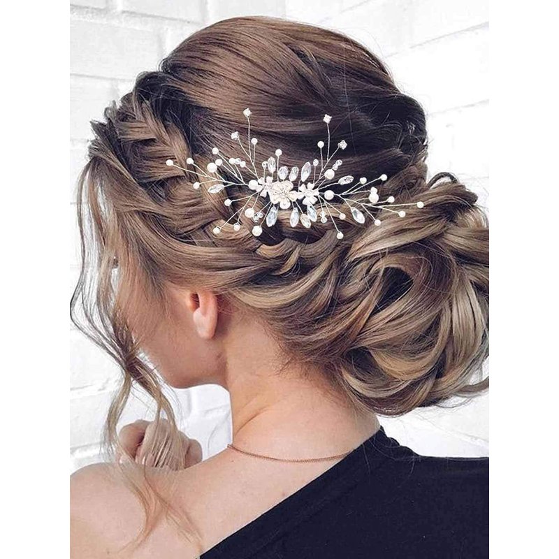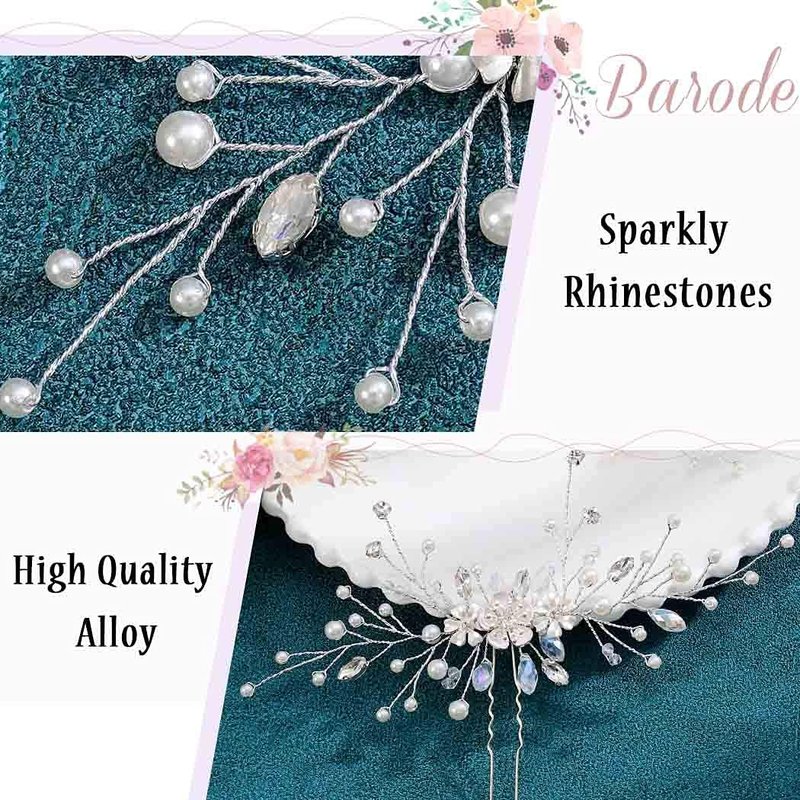 Barode Rhinestones Bridal Wedding Hair Pins Silver Flower Hairpin Pearl Bride Hair Accessories for Women and Girlss (Silver)