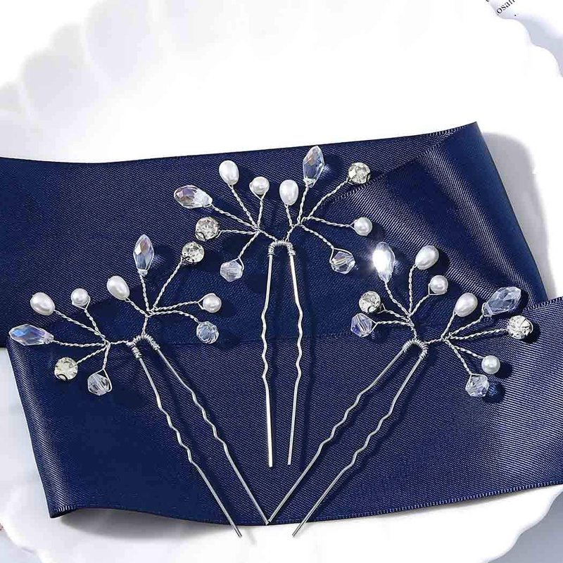 - ★Bridal hair pin made of alloy wire, rhinestone; Pack of 3;