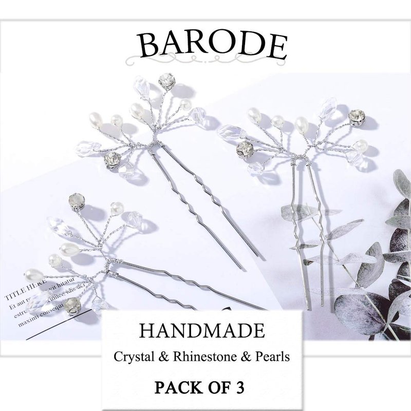 Barode Rhinestones Wedding Hair Pins Pearl Bridal Hair Accessories Crystal Bride Headpieces for Women and Girls (Pack of 3)