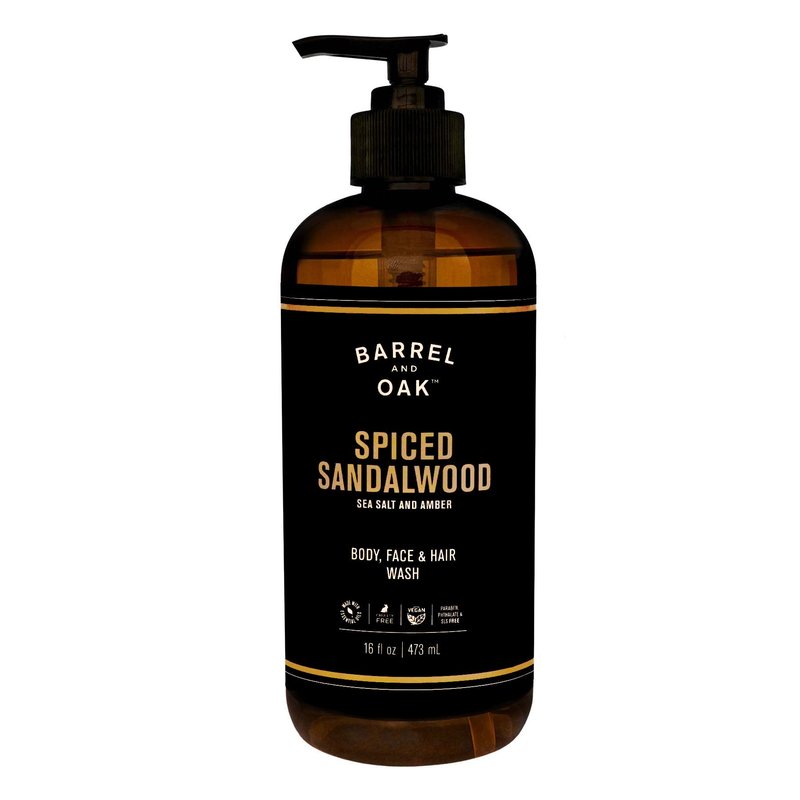 - GREAT SCENT THAT LASTS ALL DAY: Our all-in-one body wash comes in Barrel and Oak's signature scent, Spiced Sandalwood. An outdoorsy aroma of rich amber, sea salt, & sandalwood.
