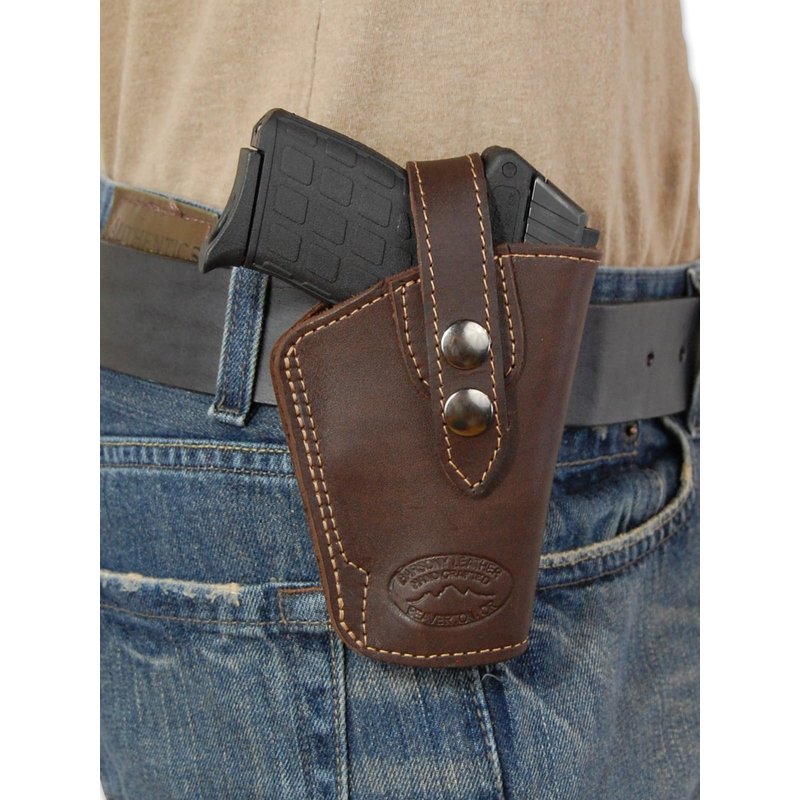 Premium Leather Outside the Waistband Belt Holster. Precision stitching, lightweight (only 4oz) and it is made in the USA. Made from premium cowhide leather. Wear it strong-side, cross draw or on the small of the back. Fits belts up to 1 3/4" wide.