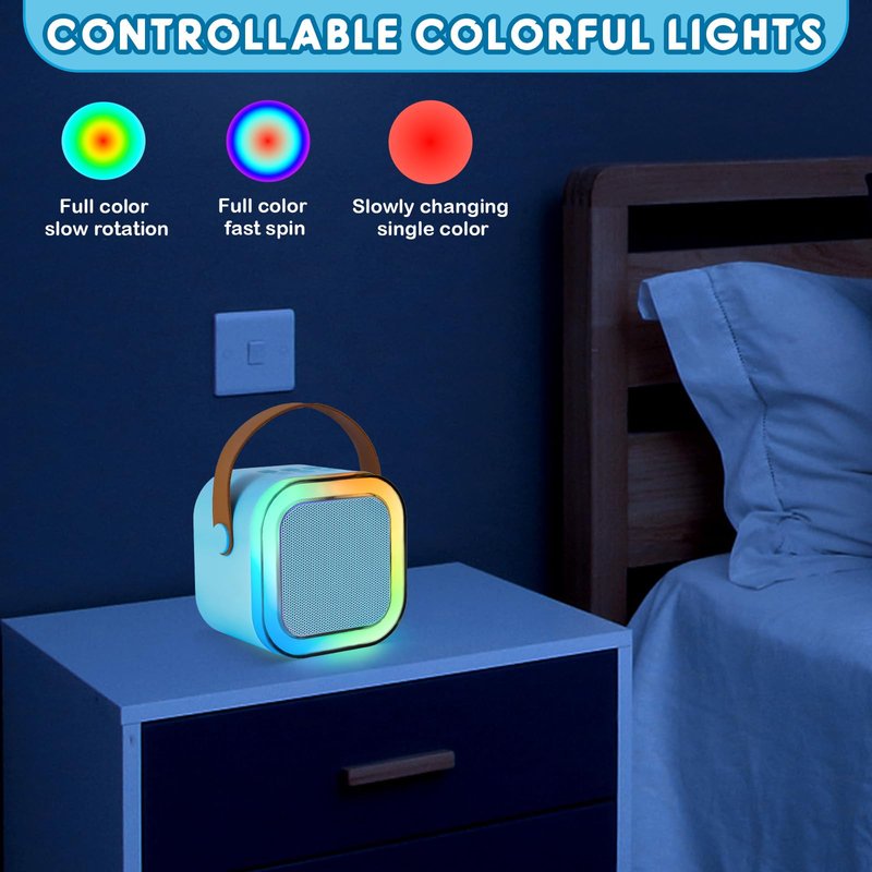 - Gift for Kids:This karaoke machine is the perfect musical companion for your child's entertainment;It is easy to use and children can operate it independently;Its LED lights can create a good party atmosphere and make children's games more joyful;It is a birthday gift for children aged 4-12