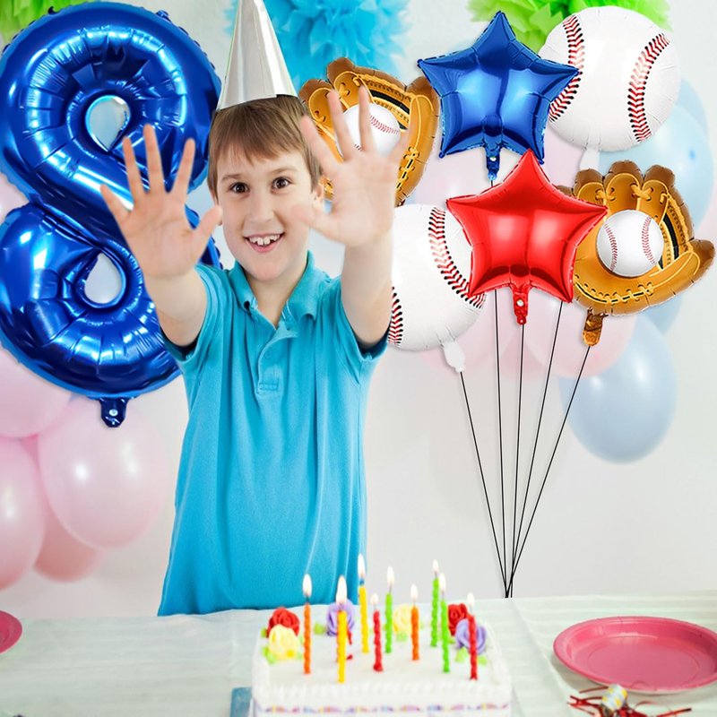 - 【Baseball Birthday Decorations】Baseball birthday balloon featured blue red white colors, with the 40inch blue 8 balloon, great combination of sports and birthday, fantastic baseball and softball birthday party supplies for boys and girls, The baseball party balloons set are perfect for baseball decorations for boys birthday party,baseball themed birthday party,sports themed birthday party,baseball balloon arch decoration,great to create a sports atmosphere for your birthday party.