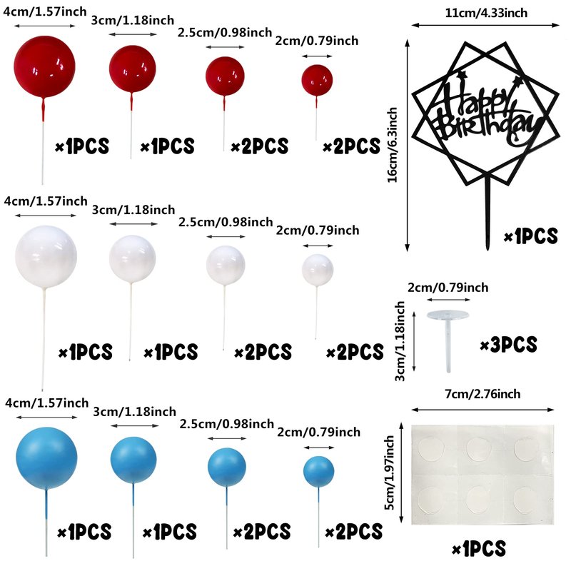 - Package:Includes 36pcs baseball cake decoration supplies,including 1pcs acrylic happy birthday cake toppers,1pcs wooden baseball bat,1pcs baseball glove,8pcs baseball cupcake topper,6pcs white ball cake topper,6pcs red ball cake topper,6pcs blue ball cake topper,1pcs big baseball,2pcs small baseball,1pcs baseball cap,3pcs cake base.