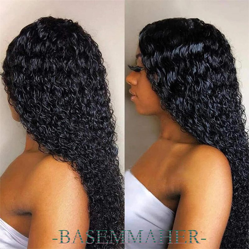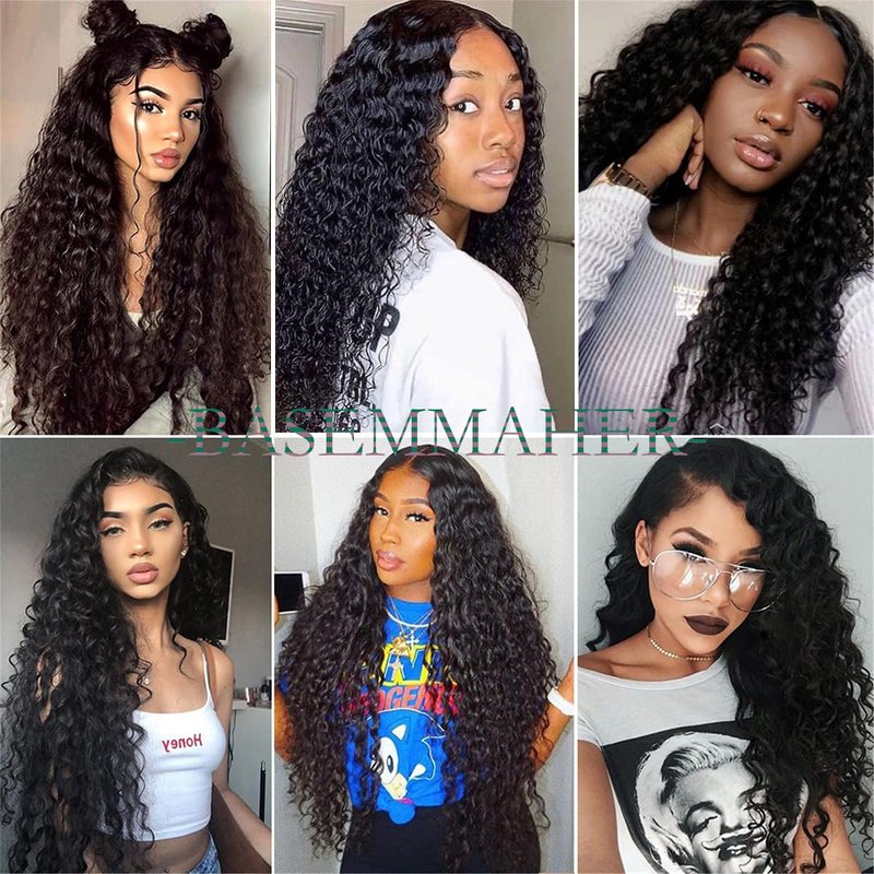 BASEMMAHER 28 Inch Long Curly Deep Wave Lace Front Wigs Synthetic Artificial Human Hair Pre Plucked for Black Women Lace Front Wigs Natural Hairline Human Hair Water Wave Wigs Heat Resistant Wigs