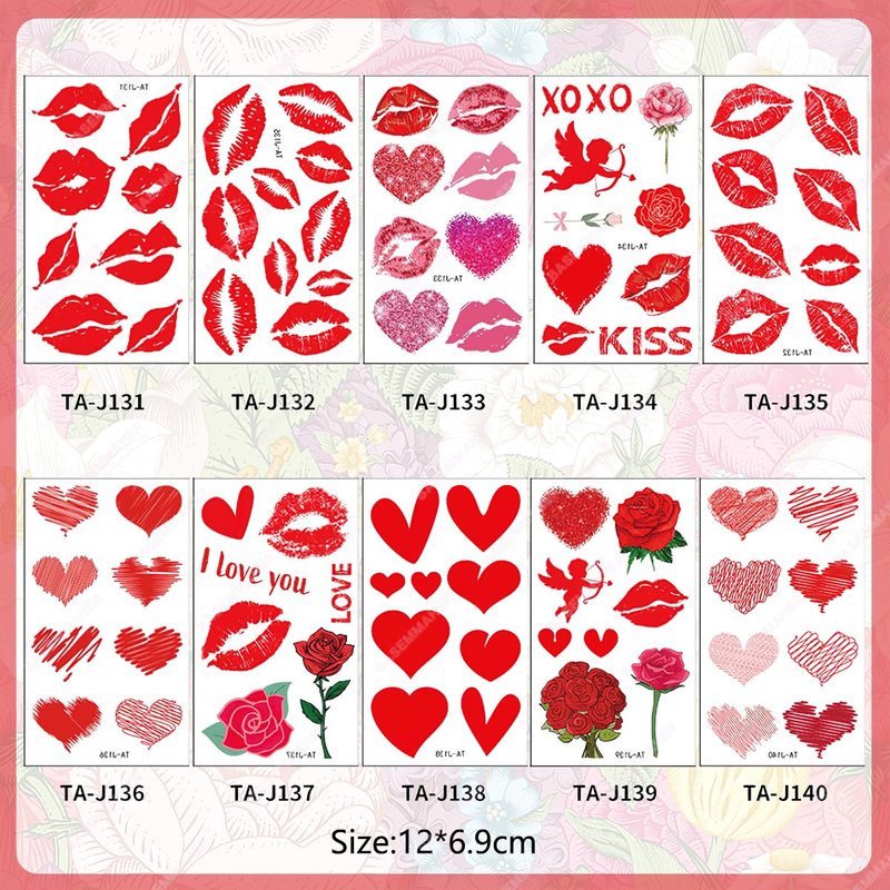 - Materials: Red lip temporary tattoo stickers use healthy and environmentally friendly materials, safe and non- toxic. Do not apply to sensitive skin, near eyes, or if you are allergic to adhesives