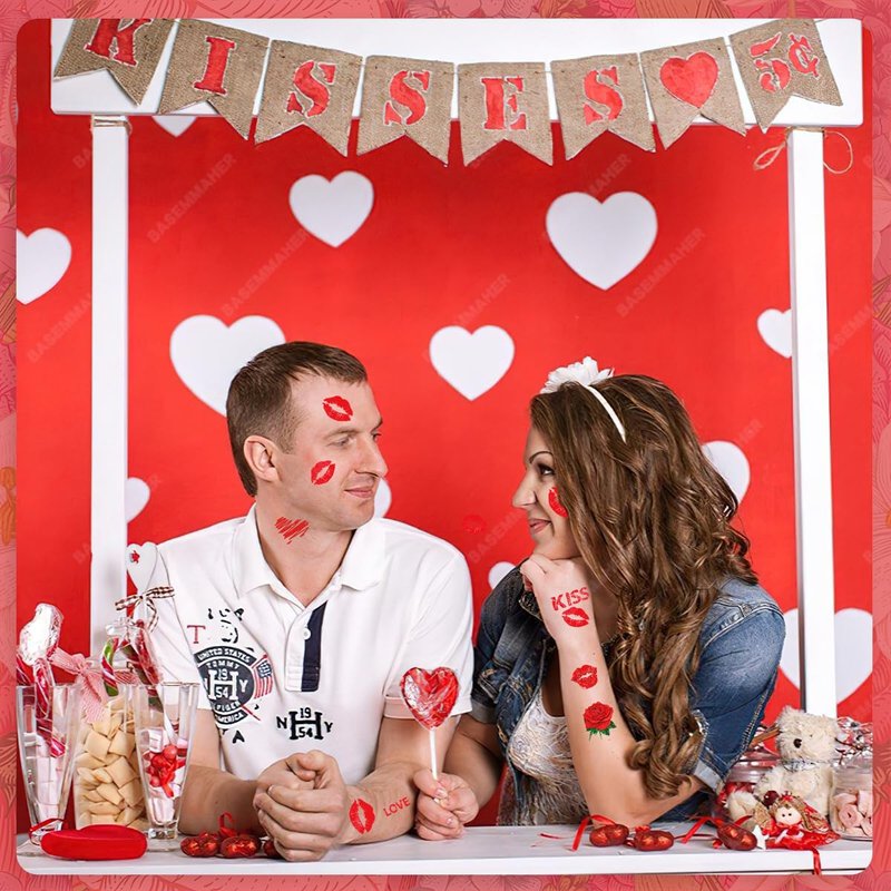 BASEMMAHER 83Pcs Valentine's Day Red Lips Heart Temporary Tattoo Stickers Red Lip Kiss Love Cupid Rose Bouquet Waterproof Fake Tattoos for Women Girls Man Face Body Lover Theme Party Decorations