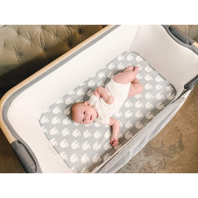BUY NOW and help baby get a comfortable, cozy nights’ sleep with our Elephants Collection bassinet bed sheet set!