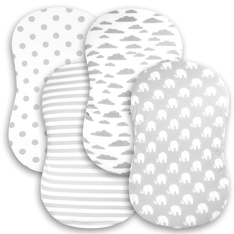 Bassinet Bed Sheets – Premium Bassinet Fitted Sheets 4 Pack – 100% Jersey Knit Cotton Cradle Sheets – Bassinet Bedding for Standard Size Oval or Halo Bassinet Pads – Bassinet Sheet for Boy & Girl