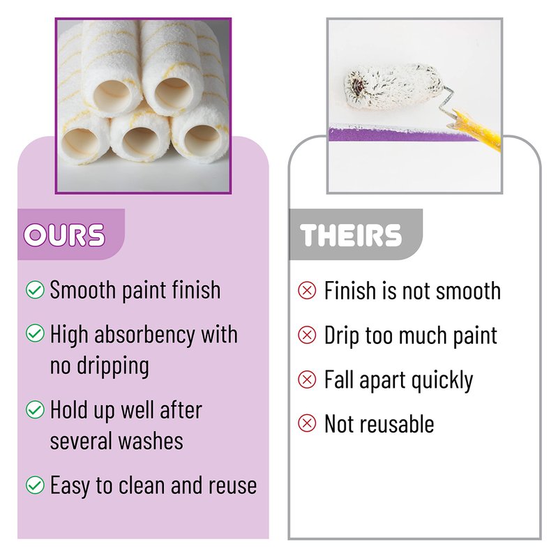 - All Purpose 1/2inch Roller Holds More Paint. High Density, Shed-Resistant Micro-Fiber Roller Naps ,Easy To Clean And Reuse