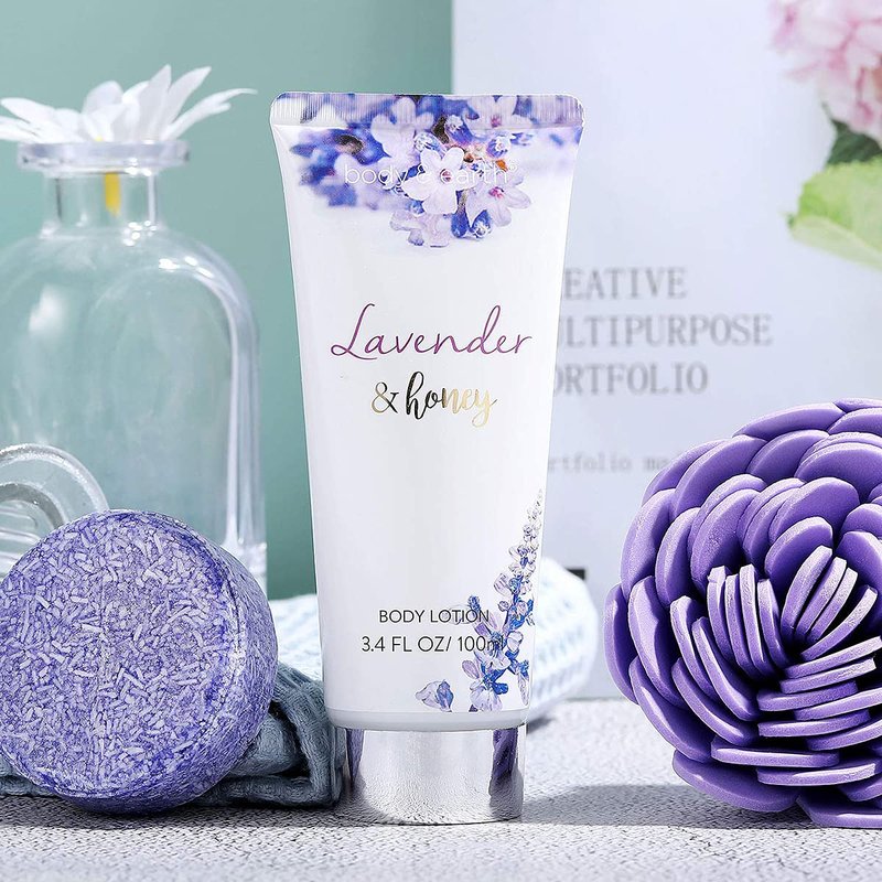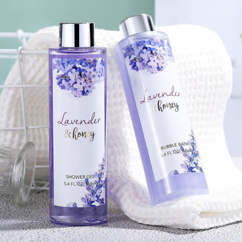 - Romantic Lavender & Honey Scent: The bath gift basket is infused with lavender flower and honey essence which makes you enjoy the gentle scent of lavender in your bath time, helps relax your body and provides the ultimate home spa pampering session