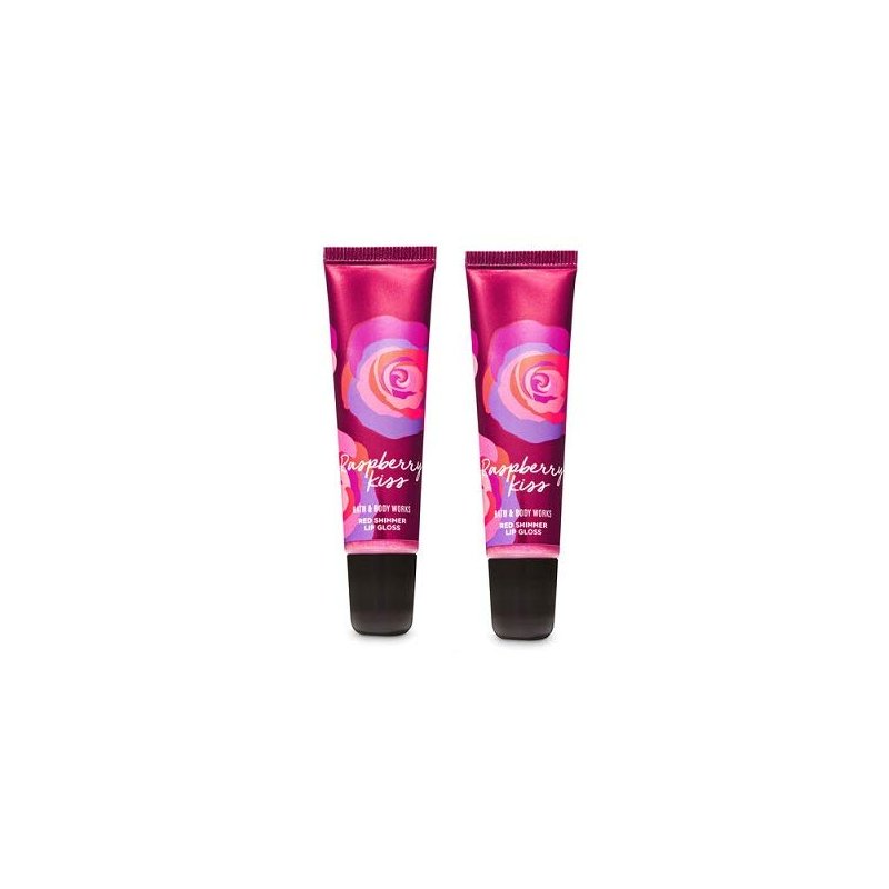 Bath and Body Works 2 Pack Raspberry Kiss Red Shimmer Lip Gloss .47 Oz.