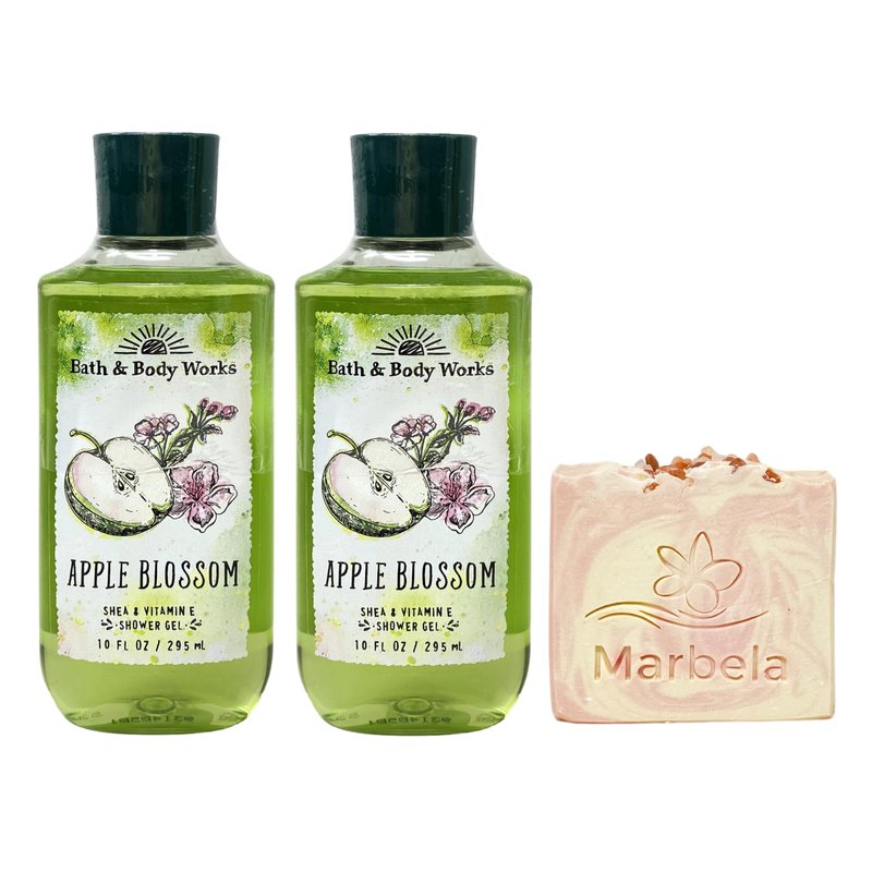 - Bath & Body Works Apple Blossom Shea + Vitamin E Shower Gel Set with a Marbela Himalayan Salts Springs Soap.