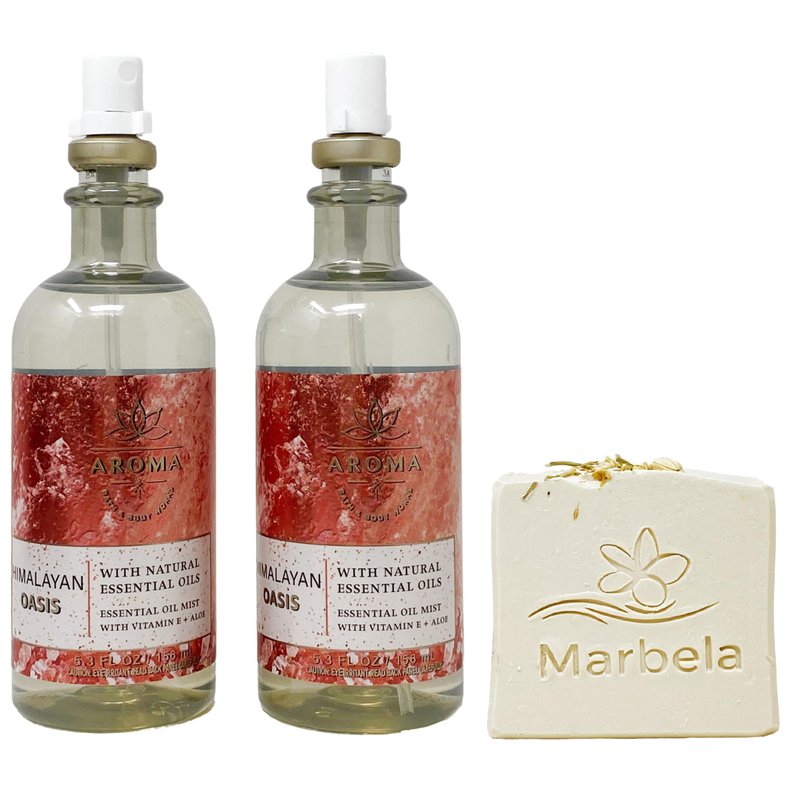 Bath & Body Works Aroma Himalayan Oasis Lime Vetiver - 2 Pack of Essential Oil Mist with a Wild Jasmine Bar Soap.