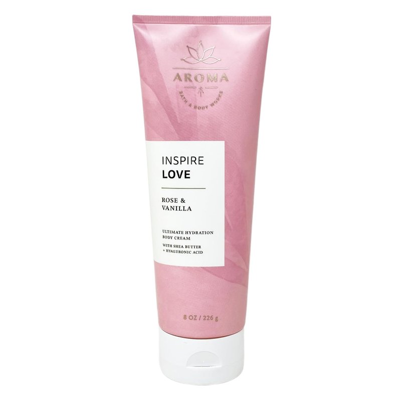 - Bath & Body Works Aroma Inspire Love ROSE + VANILLA Body Cream Set with a Marbela Himalayan Salts Springs Bar Soap.