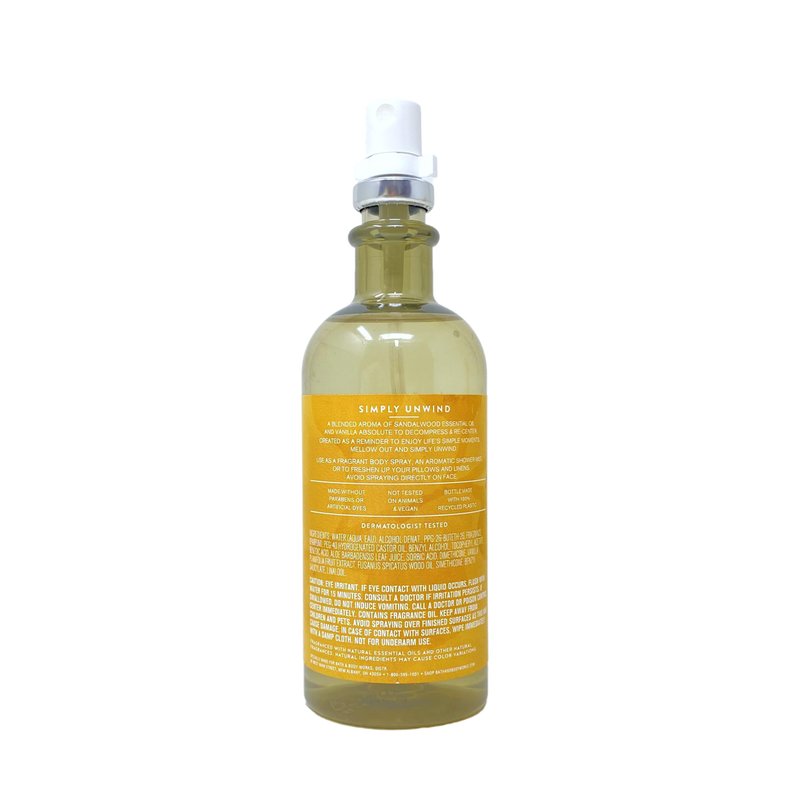 Bath & Body Works Aroma Simply Unwind Sandalwood & Vanilla Body Lotion and Essential Oil Mist Set with a 4 oz Marbela Natural Oats Bar Soap. (Handmade, Vegan Friendly, Cruelty Free). Notes of: This soap is UNSCENTED in order to be sensitive skin friendly.