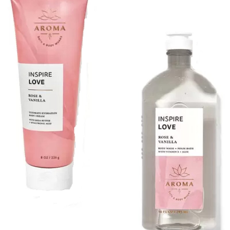 Bath & Body Works - Aromatherapy - Love - Rose Vanilla – 2 pc Bundle - Body Wash & Foam Bath & Body Cream -2020