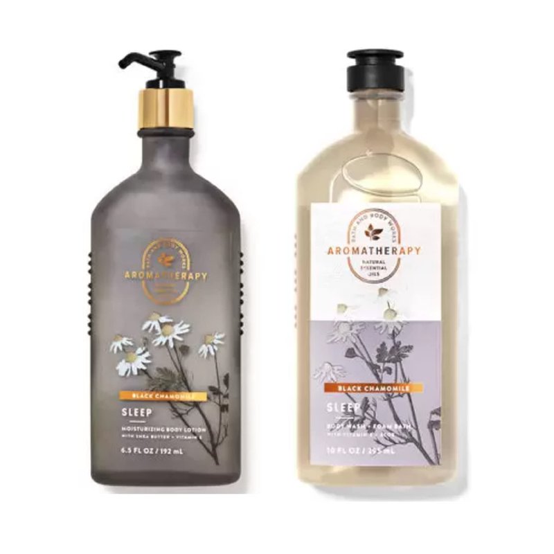 - Bath & Body Works Aromatherapy Sleep Black Chamomile Body Wash + Foam Bath & Body Lotion Set