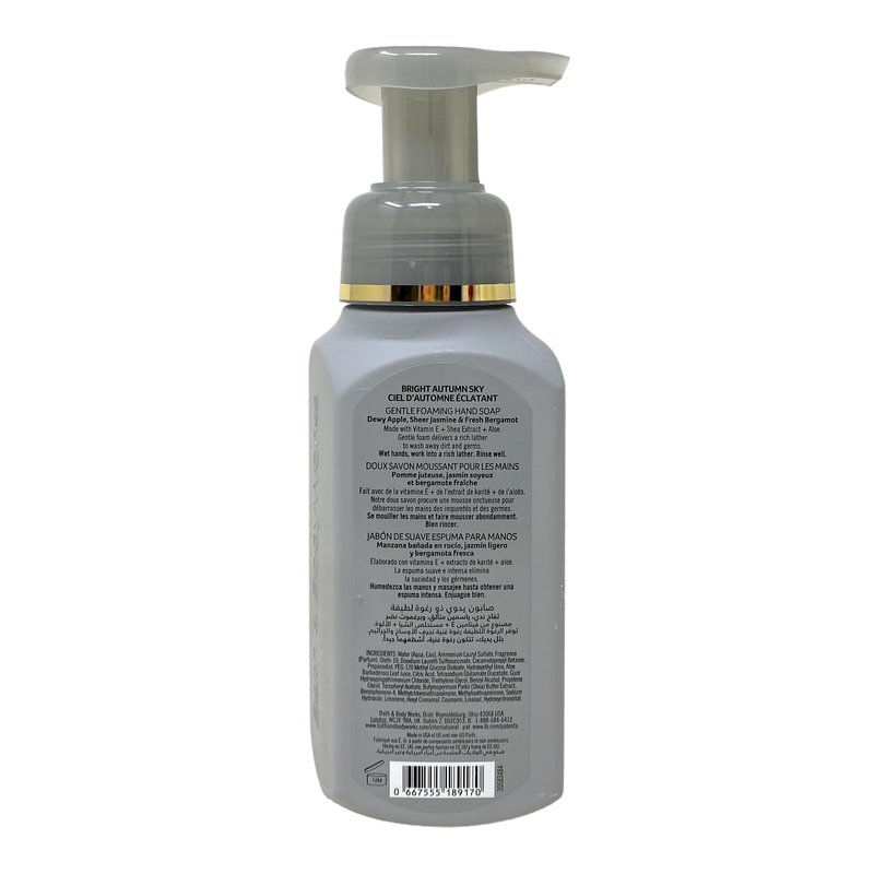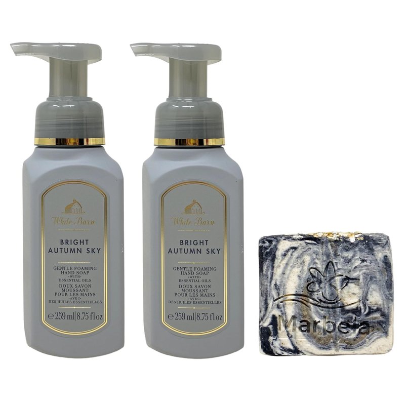 - Bath & Body Works Bright Autumn Sky Gentle Foaming Hand Soap Bundle with a 4 oz Marbela Charcoal Scrub Bar Soap. (Soap May Vary).