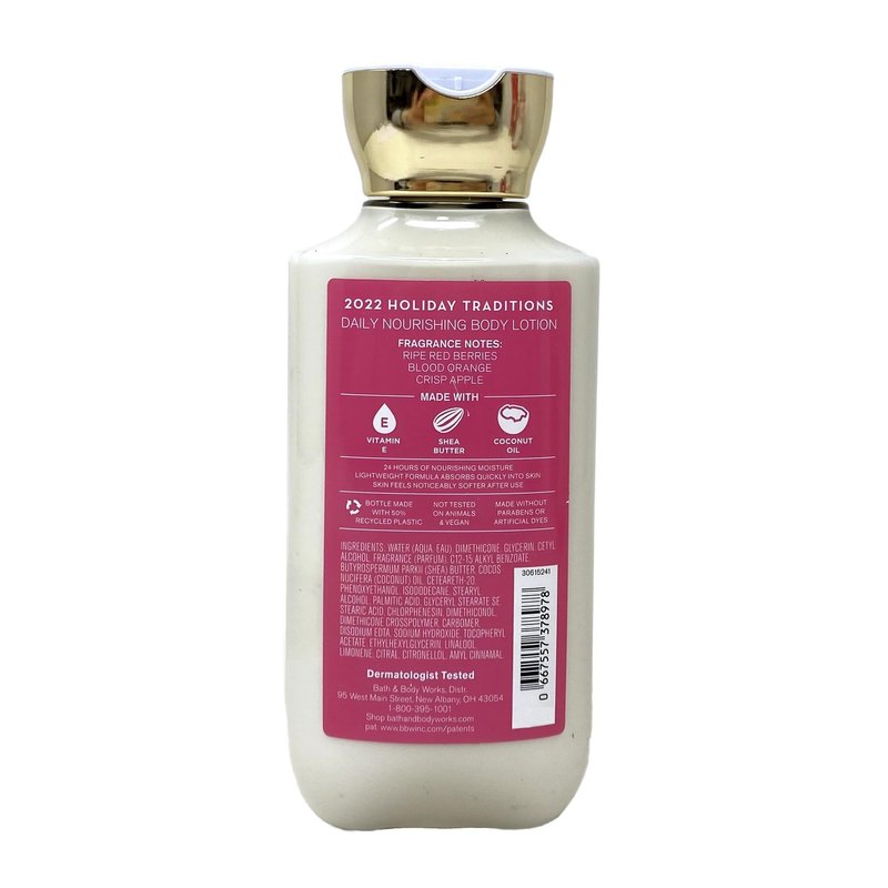 Bath & Body Works Bright Christmas Morning Daily Nourishing Body Lotion Set with a Marbela Himalayan Salts Springs Bar Soap. INCLUDES: 3 Daily Nourishing Body Lotions (8 fl oz / 236 mL each) and a 4 oz Marbela Himalayan Salts Springs Bar Soap. Bright Christmas Morning - What it smells like: that first waking up feeling on Christmas morning—fresh and exciting. Fragrance notes: ripe red berries, blood orange and crisp apple. Marbela Himalayan Salts Springs Soap - Himalayan salts help hydrate and nourish the skin, with its water absorbent properties. These minerals are known to be helpful for acne, irritated and dry skin. Himalayan Salt Springs soap has natural kaolin clay blended to further moisturize and hydrate your body. Scent: Citrusy Florals with Litsea Cubeba Essential Oil.