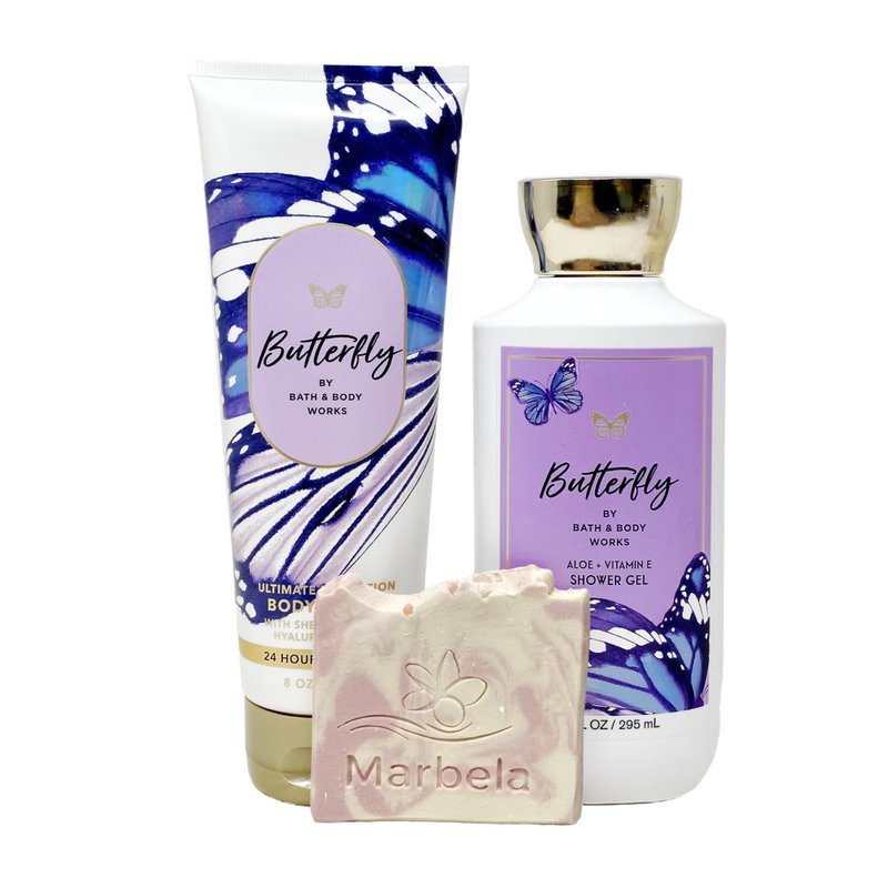 - Bath & Body Works Butterfly With a Marbela Himalayan Salts Springs Sample Soap. (Marbela Sample Soap May Vary).