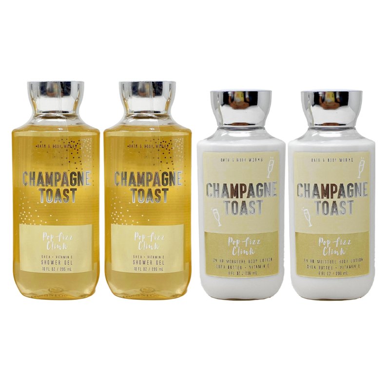 Bath & Body Works Champagne Toast - 4 Piece - 2 Shower Gel with Shea + Vitamin E and 2 Moisture Body Lotion