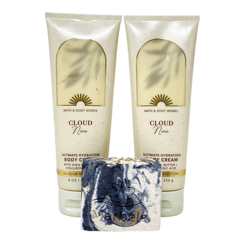 Bath & Body Works Cloud Nine 2 Piece Body Cream Gift Set with a Charcoal Scrub Bar Soap - Full Size