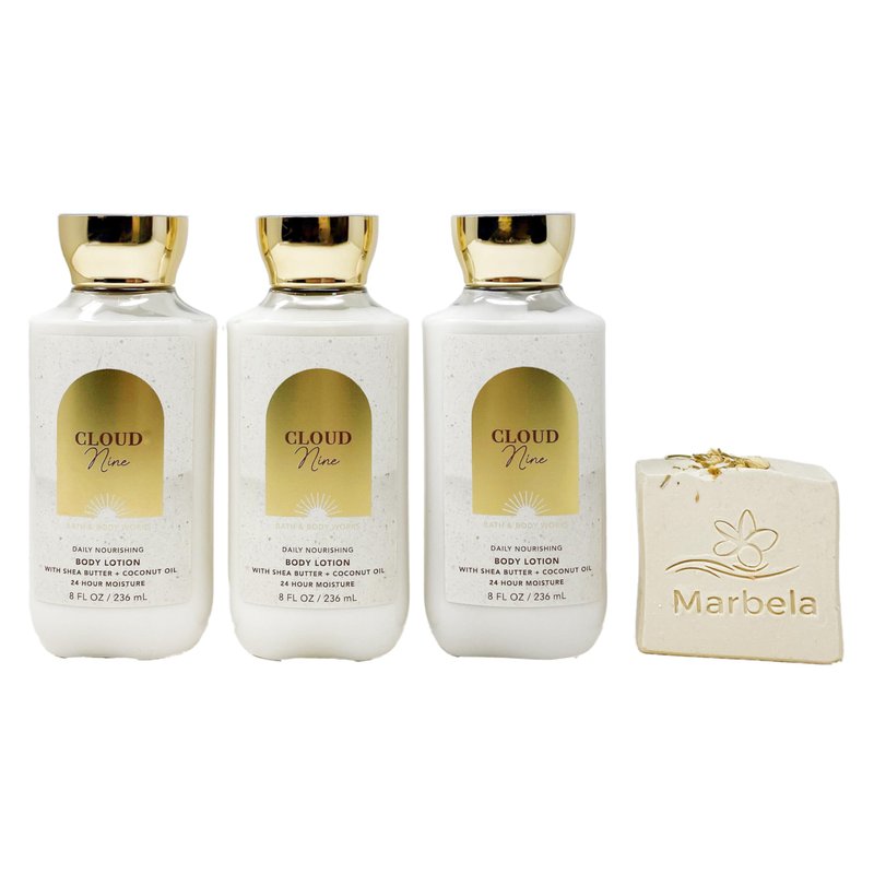 Bath & Body Works Cloud Nine 3 Pack of Body Lotion With a Wild Jasmin Bar Soap.