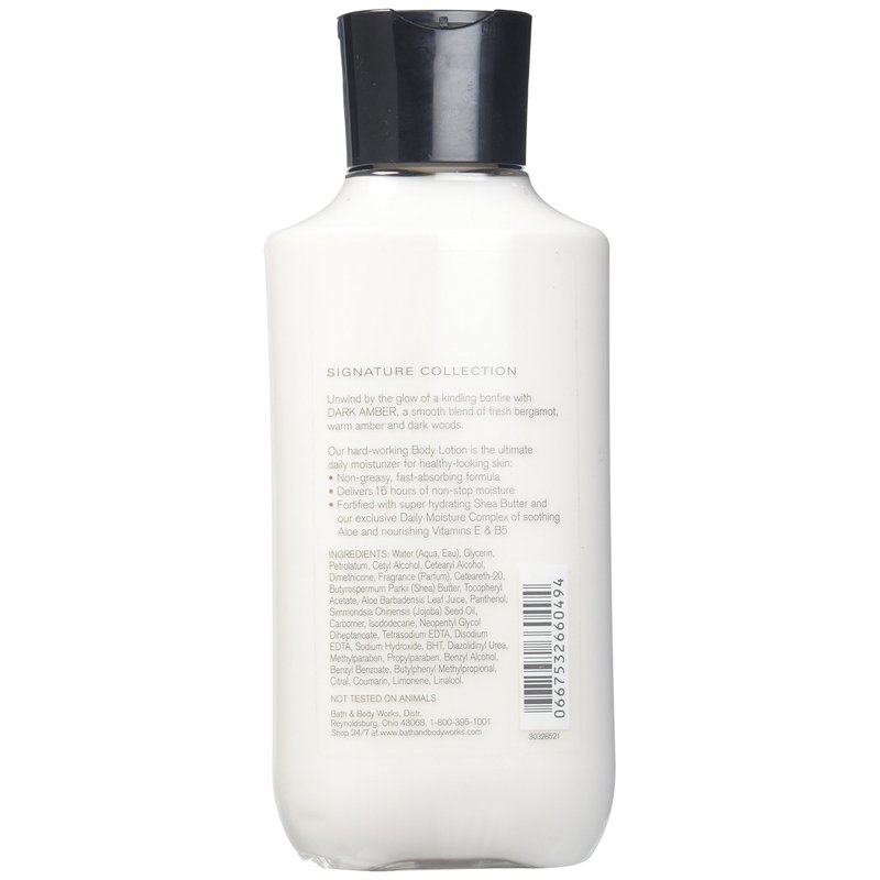 Bath & Body Works Dark Amber for Men 8.0 oz Body Lotion. How-to-Use: Squeeze a generous amount of body lotion/cream into hands and apply to desired area.