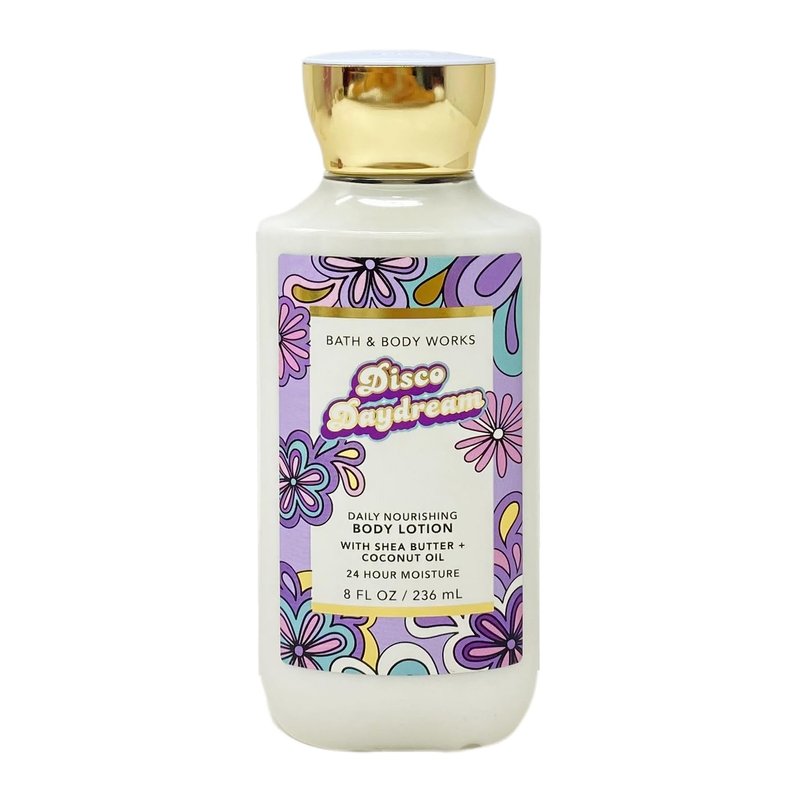 - Bath & Body Works Disco Daydream Daily Nourishing Body Lotion Bundle with a Marbela Lavender Dream Bar Soap.