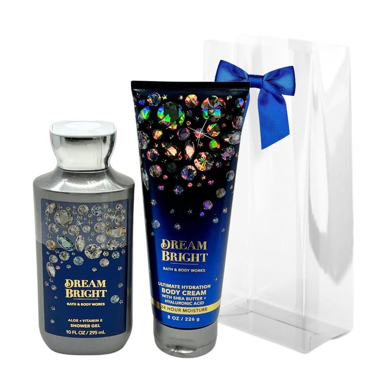 Bath & Body Works DREAM BRIGHT 2-piece Gift Set with a Blue Bow for Holidays & Gifts - Shower Gel 10oz & Body Cream 8 oz