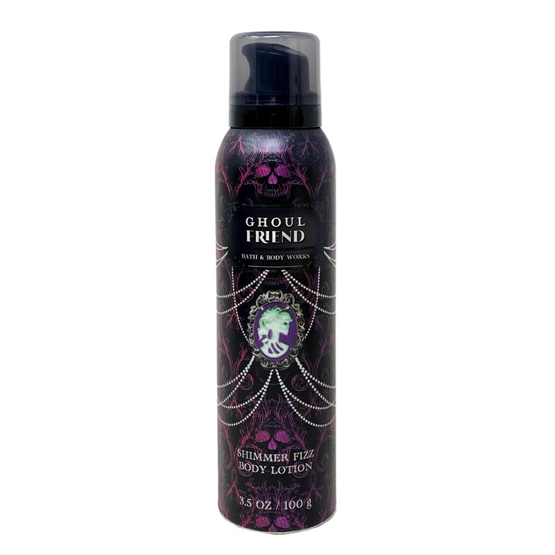 - Bath & Body Works Ghoul Friend Shimmer Fizz Body Lotion Set with a Marbela Natural Oats Sample Soap.