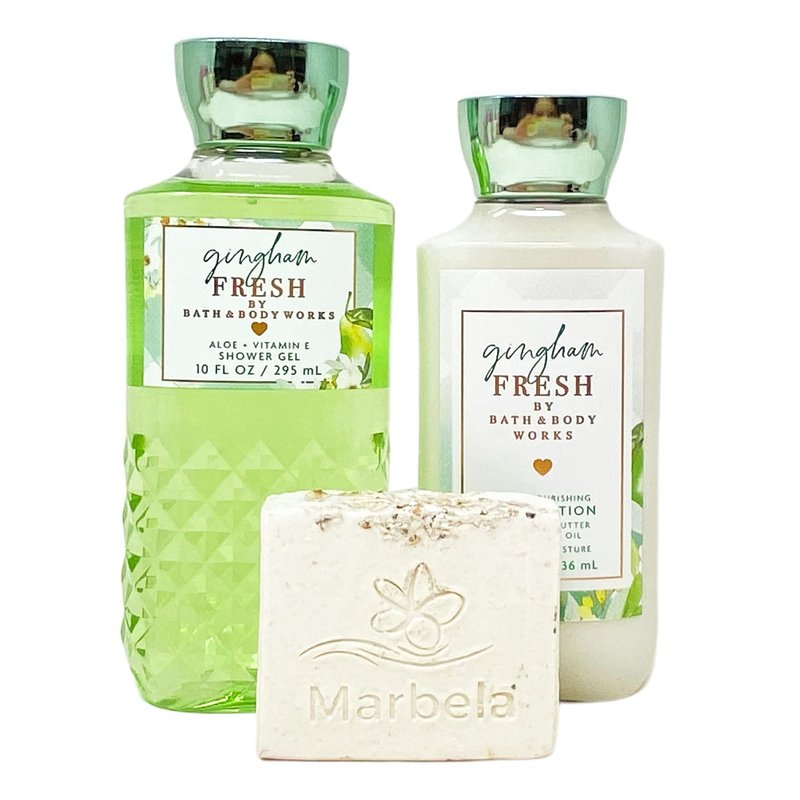 - Bath & Body Works Gingham Fresh 2 Piece Gift Set - Body Lotion and Shower Gel - with a Natural Oats Bar Soap - Full Size