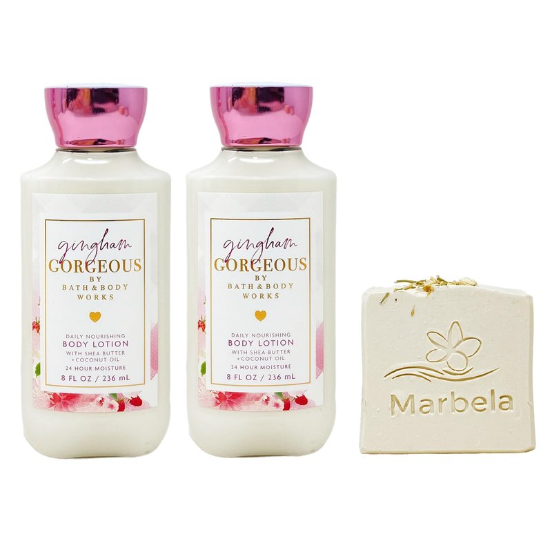 - Bath & Body Works Gingham Gorgeous - Pack of Two - Body Lotion With Wild Jasmine Soap., Pink
