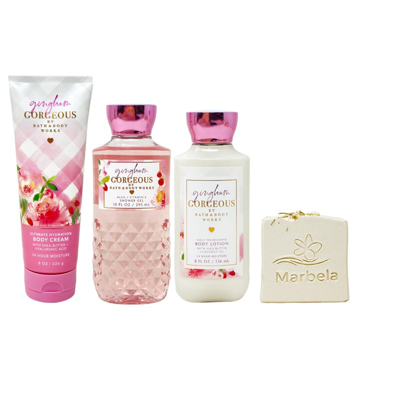Bath & Body Works Gingham Gorgeous - Trio Gift Set - Body Cream, Shower Gel and Body Lotion With Wild Jasmine Soap.