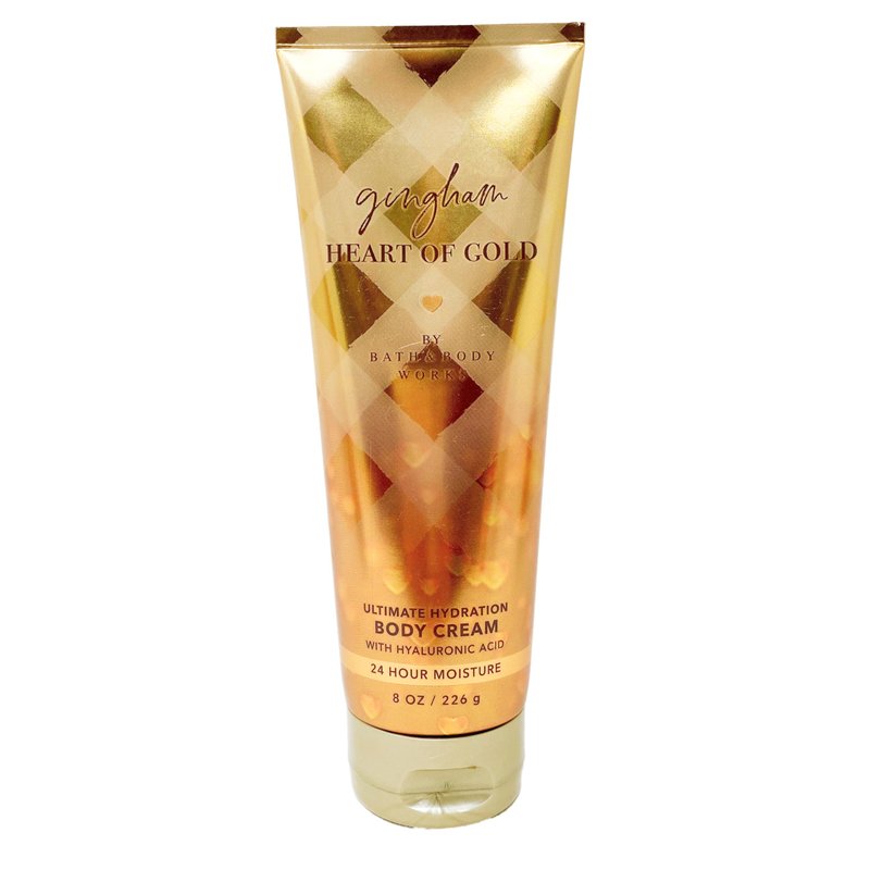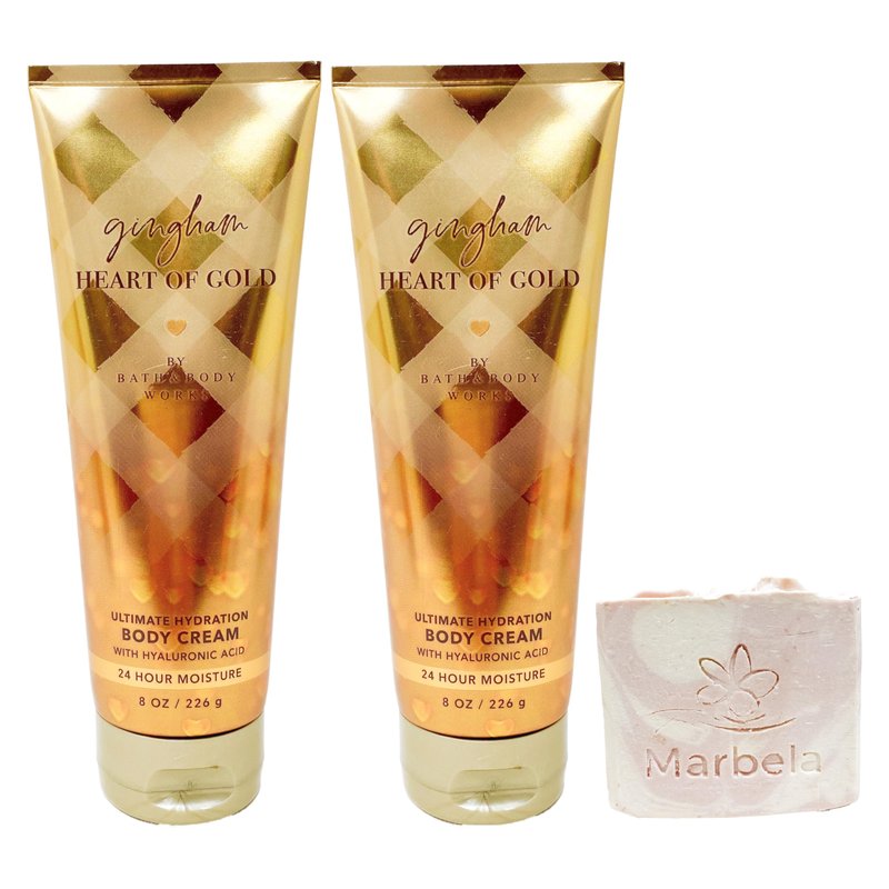 Bath & Body Works Gingham Heart Of Gold - 2 Pack Of Ultimtate Hydration Body Cream With a Marbela Himalayan Salts Springs Bar Soap. (Marbela Bar Soap May Vary).