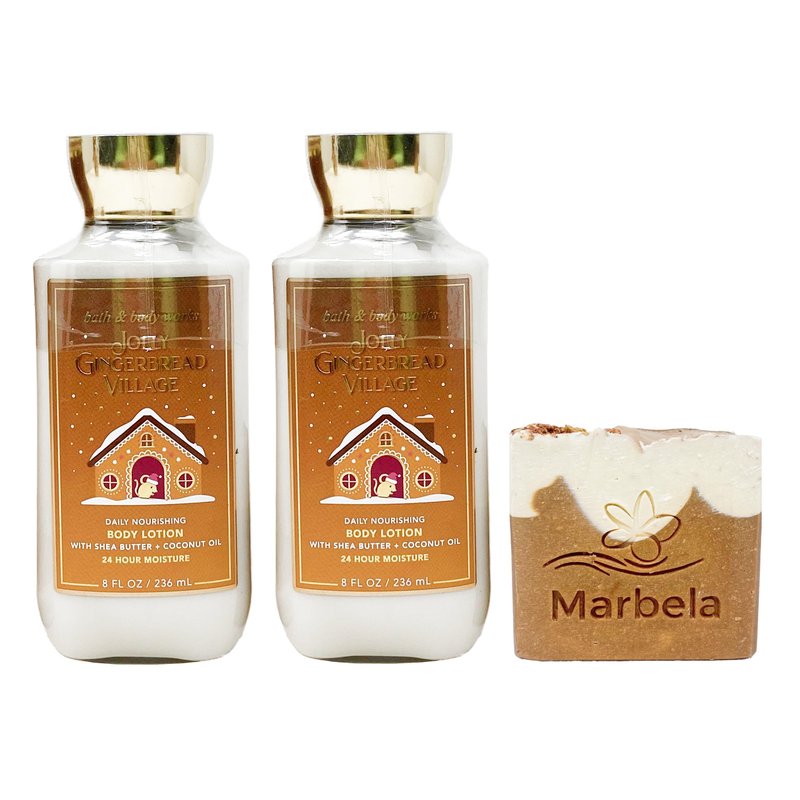Bath & Body Works Jolly Gingerbread Village - 2 Pack Of Daily nourishing Body Lotion with a Marbela Yamma Jamma Bar Soap (Marbela Soap May Vary).