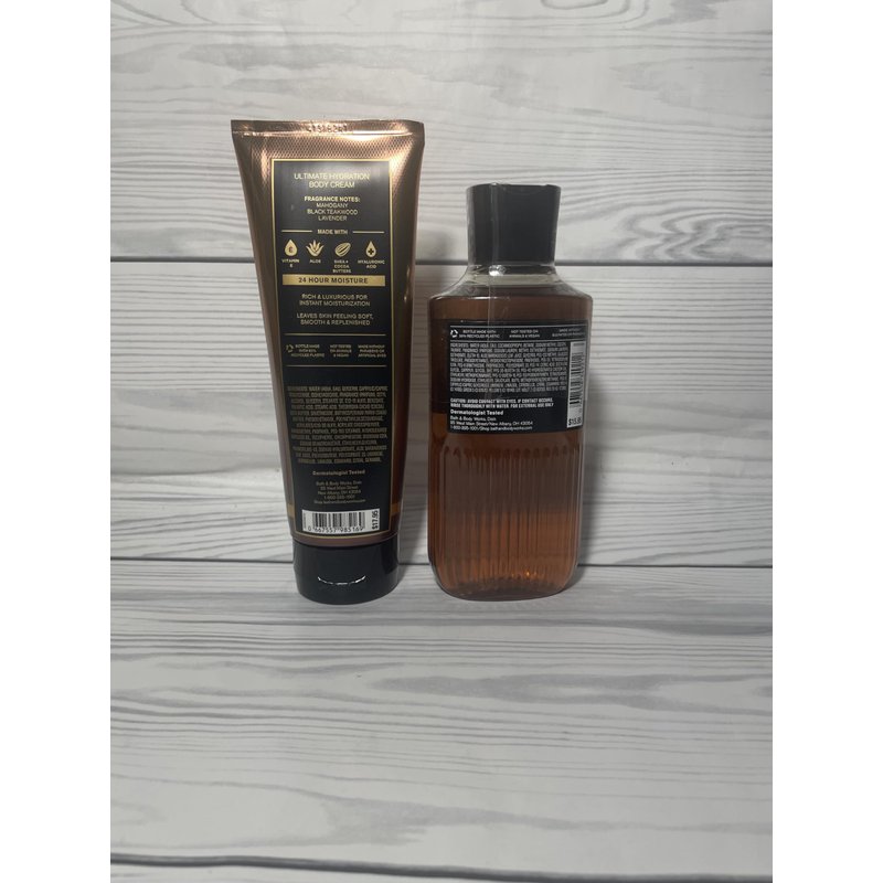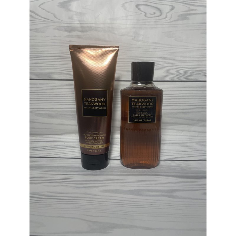 Bath & Body Works Mahogany Teakwood Men's 3-in-1 Hair, Face & Body Wash and Body Cream 2 Piece Set