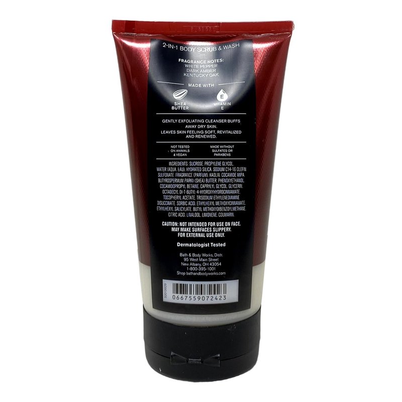 Bath & Body Works Men's Collection Bourbon 2 Piece Bundle with a Marbela Cabin Spice Bar Soap. INCLUDES: 8 oz / 226 g Ultra Shea Body Cream, 8 oz / 226 g 2-in-1 Body Scrub & Wash, and a 4 oz Marbela Cabin Spice Bar Soap. Bourbon - What it smells like: a bold, smooth, barrel-aged pour. Fragrance notes: white pepper, dark amber and Kentucky oak. Marbela Cabin Spice Bar Soap - Imagine being cozied up next to a bonfire, cooking over the fire, and smelling the smoke all through the air. There are few things that feel quite like fall in the same way a bonfire does. Cabin Spice is the perfect warm scent to last from early fall all the way through the winter. Scent: Tobacco, Patchouli, Bay.