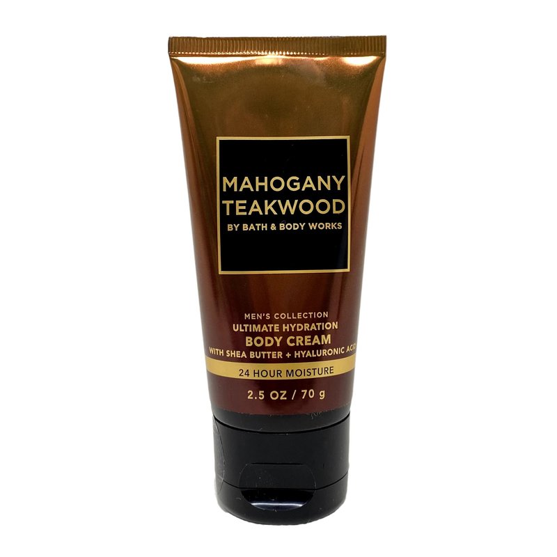 Bath & Body Works Men's Collection Mahogany Teakwood Body Cream and 3-in-1 Hair, Face & Body Wash Bundle with a Natural Oats Sample Soap - Travel Size