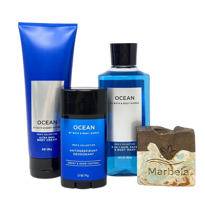 - Bath & Body Works Men's Collection Ocean 3 Piece Bundle - Body Cream - 3-in-1 Hair, Face & Body Wash - Deodorant - with a Cabin Spice Bar Soap - Full Size