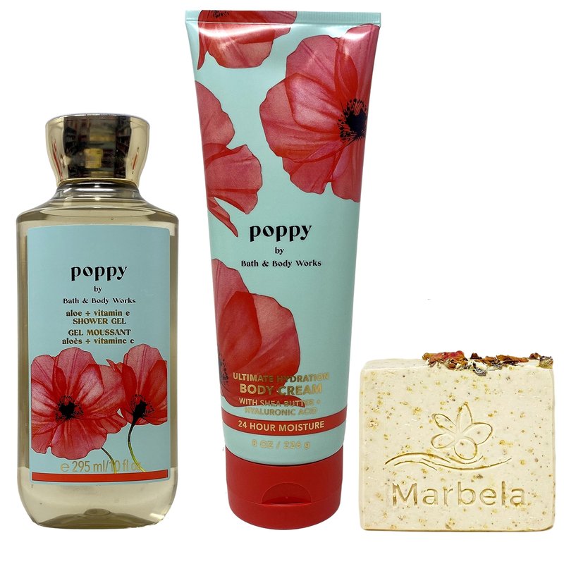 - Bath & Body Works Poppy 2 Piece Bundle - Body Cream and Shower Gel with a Creamy Rose Bar Soap.