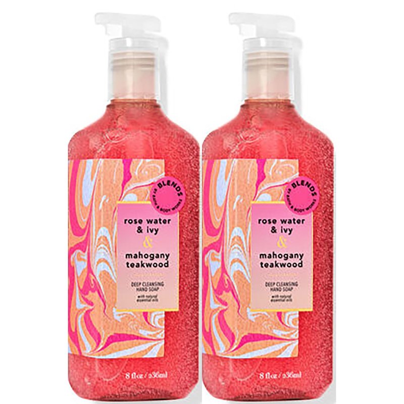Bath & Body Works Rose Water & Ivy & Mahogany Teakwood Hand Soap, Cleansing Gel, 8 Fl Oz (Pack of 2) (Rose Water & Ivy & Mahogany Teakwood)